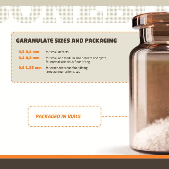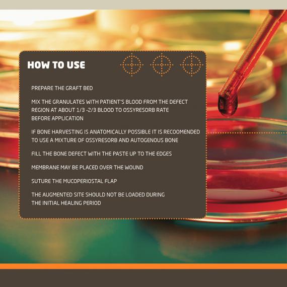 OSSYRESORB is a totally absorbable augmentation material for the treatment of bone loss. It is resorbed simultaneously while autologous bone is forming. B-tricalcium phosphate is fully absorbable. The porous material has very similar biological features to natural bone. It shows very good post-surgical stability.
