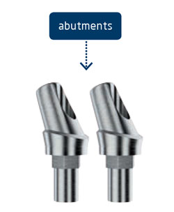 When the hexagonal positioning part of the head part fits into the hexagonal inside of the implant, there is a small click and the abutment becomes stable. After that, the fixing screw is screwed in and tightened with the torque ratchet through the abutment. The torque recommended for tightening of the abutment should be 25 Ncm and 30 Ncm for ball heads. Abutments are made of unalloyed titanium. The neck part of the abutments is smooth polished to ensure the development of the peri-implant permucosal seal. The low neck part encloses a threaded inner hole for fixing the screw that retains the prosthesis.