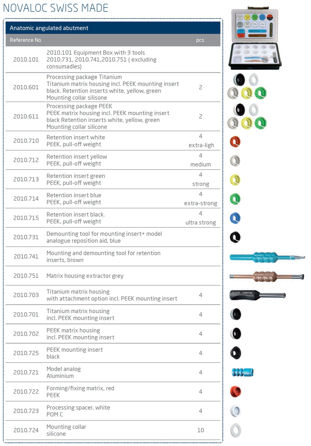 Dentiloc abutment provides spherical retention fixation. It can mainly be utilized in implants with larger axial deviation, where excellent fixation can be provided even at 40’ axial deviation.