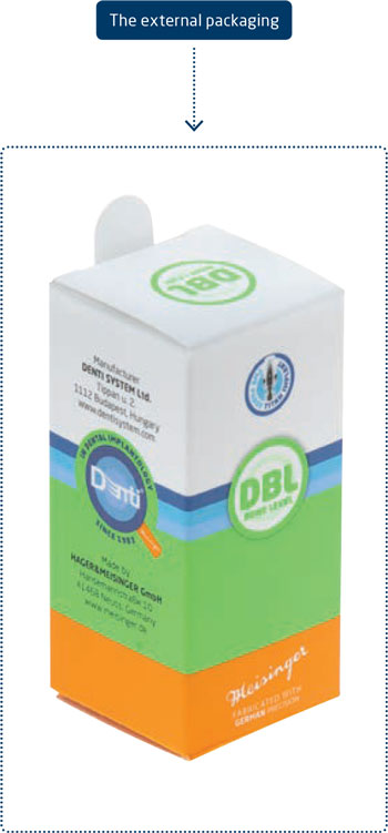All Denti® implants can be traced back according to product name and LOT number, which can be found on both the outer and the inner packings. Please keep the self-adhesive barcode labels.