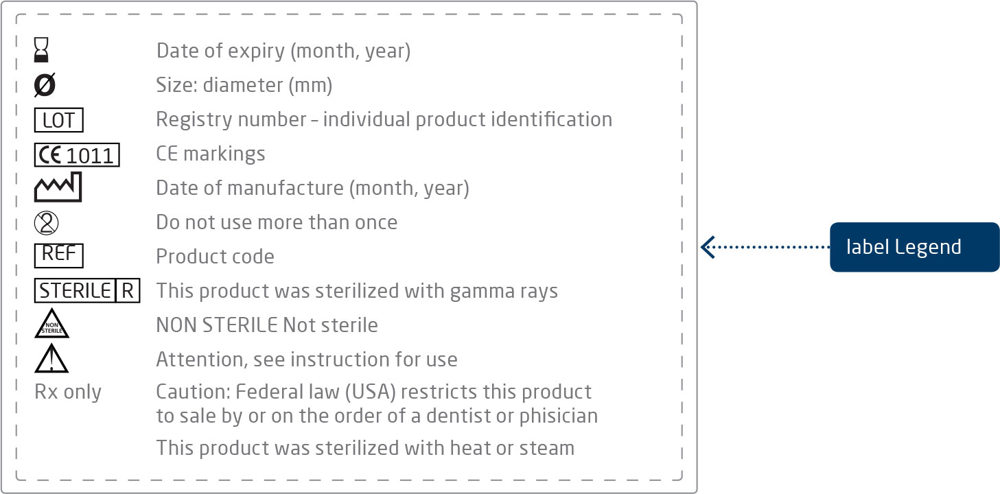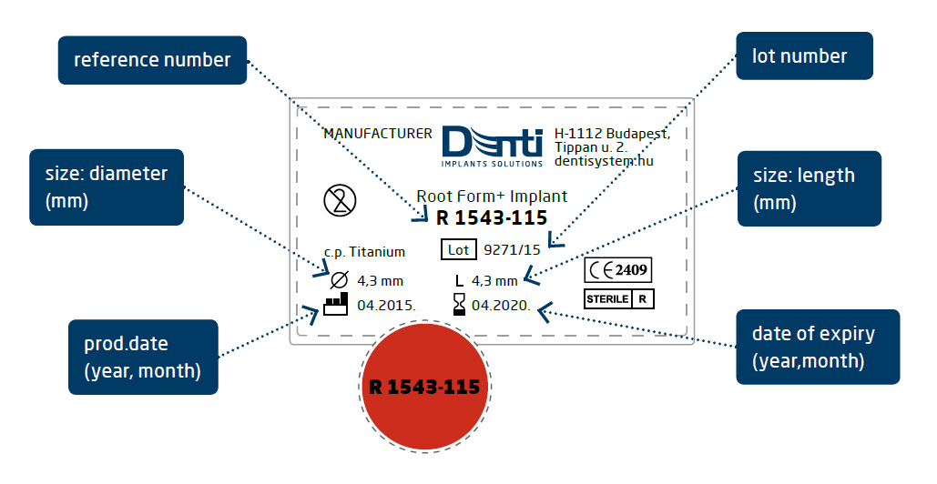 All Denti® implants can be traced back according to product name and LOT number, which can be found on both the outer and the inner packings. Please keep the self-adhesive barcode labels.